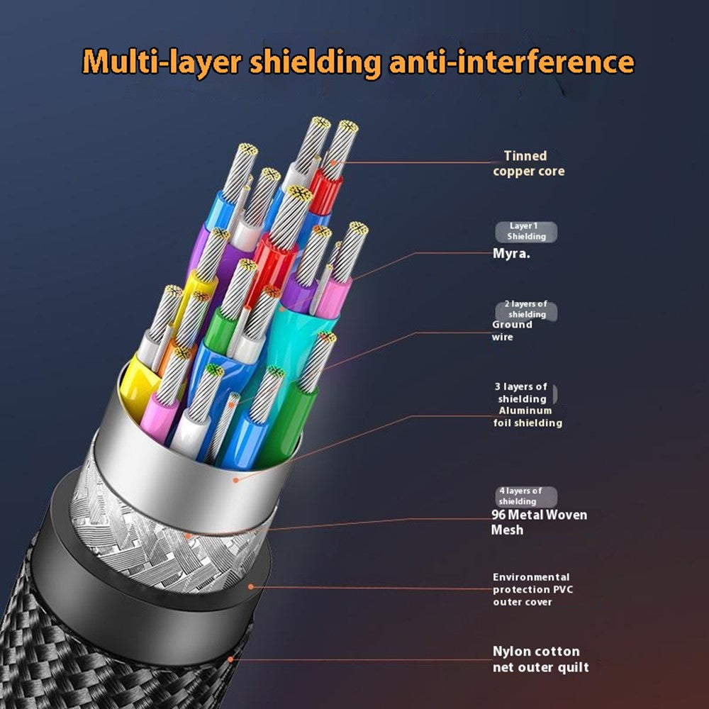 Com construção robusta em liga de alumínio, conectores banhados a ouro e núcleo em cobre estanhado, garante transmissão estável e redução de interferências. A blindagem múltipla e o revestimento em PVC com malha de algodão aumentam a durabilidade e resistência ao desgaste.