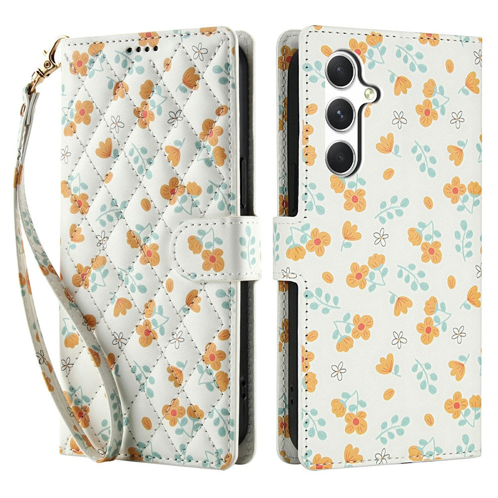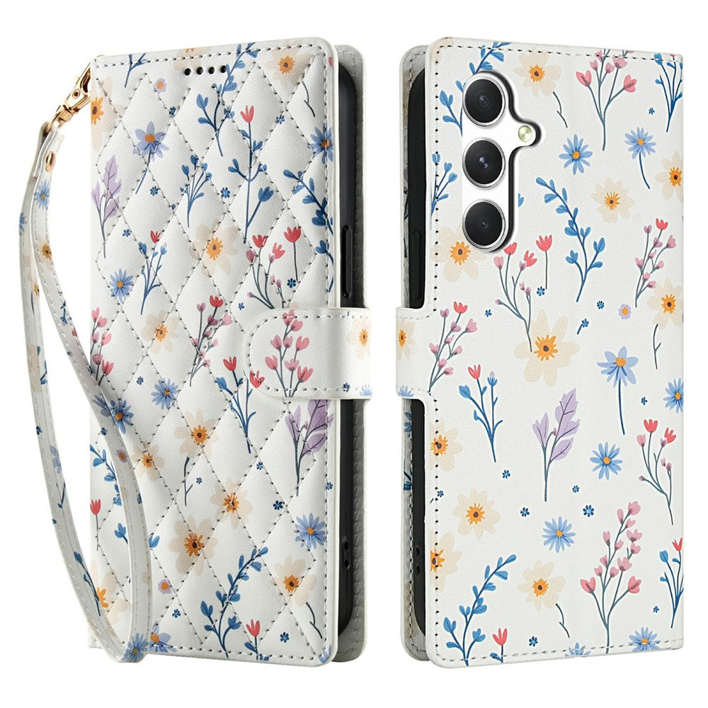 The RhombiFlor Case combines functionality and style in a wallet-style design, ideal for everyday use with the Samsung A55 5G. Featuring a geometric embossed floral pattern and a faux leather finish, it includes a magnetic closure and wrist strap for added security.