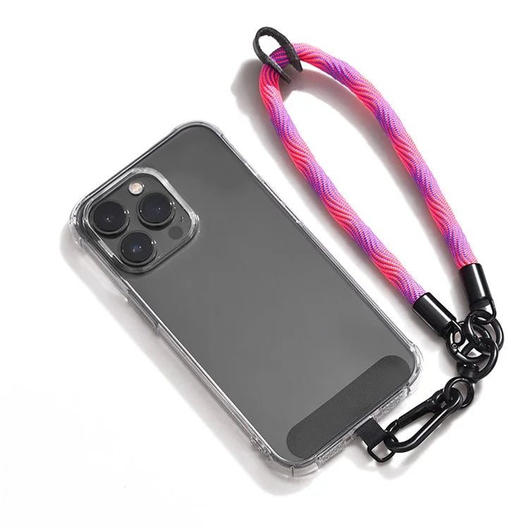 Universal cell phone lanyard in a mix of pink and purple - elegant, comfortable and adjustable. Compatible with any cell phone, with durable nylon cord for security. Take your device with you effortlessly.