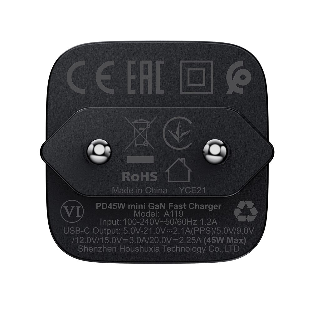 The Acefast A119 Charger uses GaN (gallium nitride) technology to deliver high power in an ultra-compact format. With up to 45W of USB-C output and PD (Power Delivery) support, it's ideal for quickly and efficiently charging everything from compatible smartphones to laptops.
