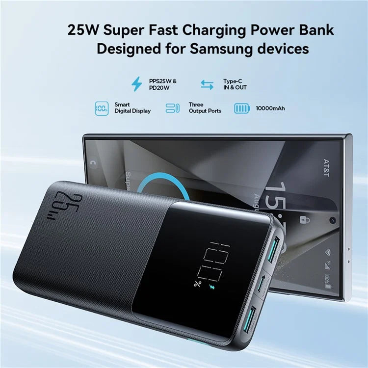 10000mAh portable powerbank with 25W fast charging capacity, ideal for keeping your devices charged anywhere.