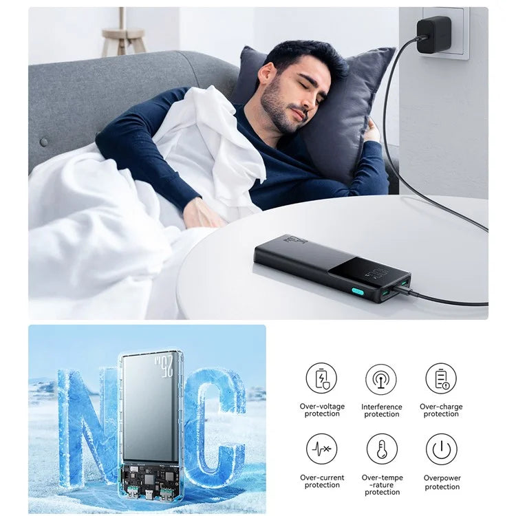 The digital screen displays the power level and fast charging status in real time. With support for multiple fast charging protocols and intelligent temperature control, the power bank guarantees safety and efficient performance for your devices.