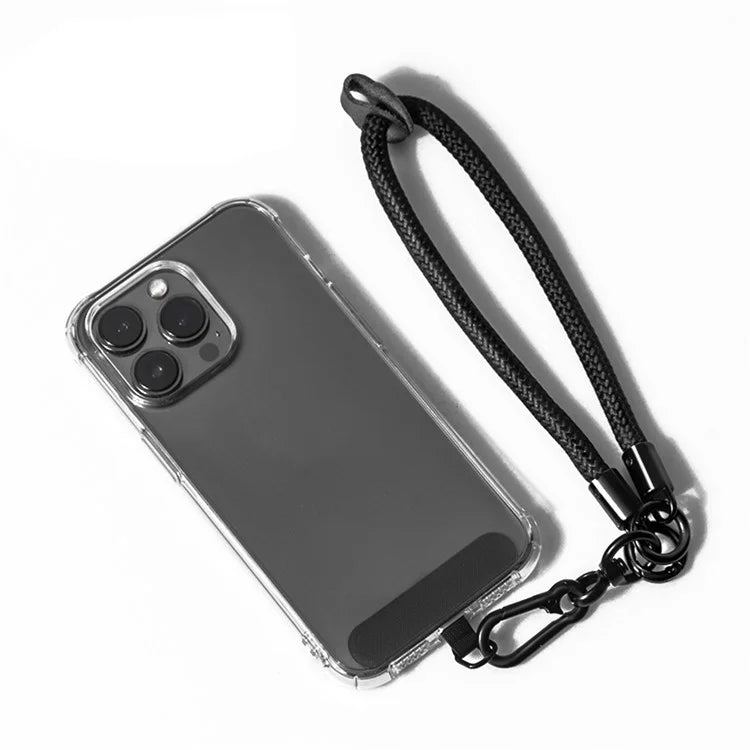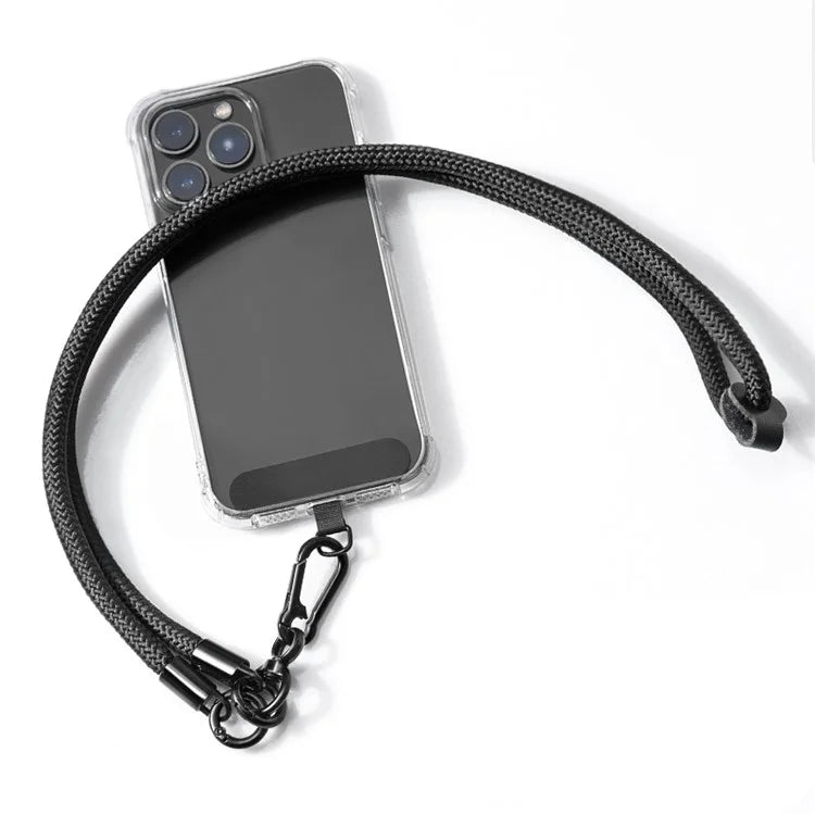 Universal black cell phone lanyard - elegant, comfortable and adjustable. Compatible with any cell phone, with durable nylon cord for security. Take your device with you effortlessly.