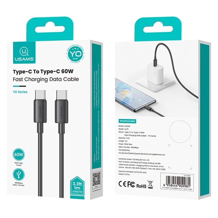 O cabo USAMS YD Série 60W oferece carregamento rápido e eficiente para uma ampla gama de dispositivos. Feito de material durável e resistente ao desgaste, este cabo é ideal para quem precisa de um acessório confiável para o dia a dia.
