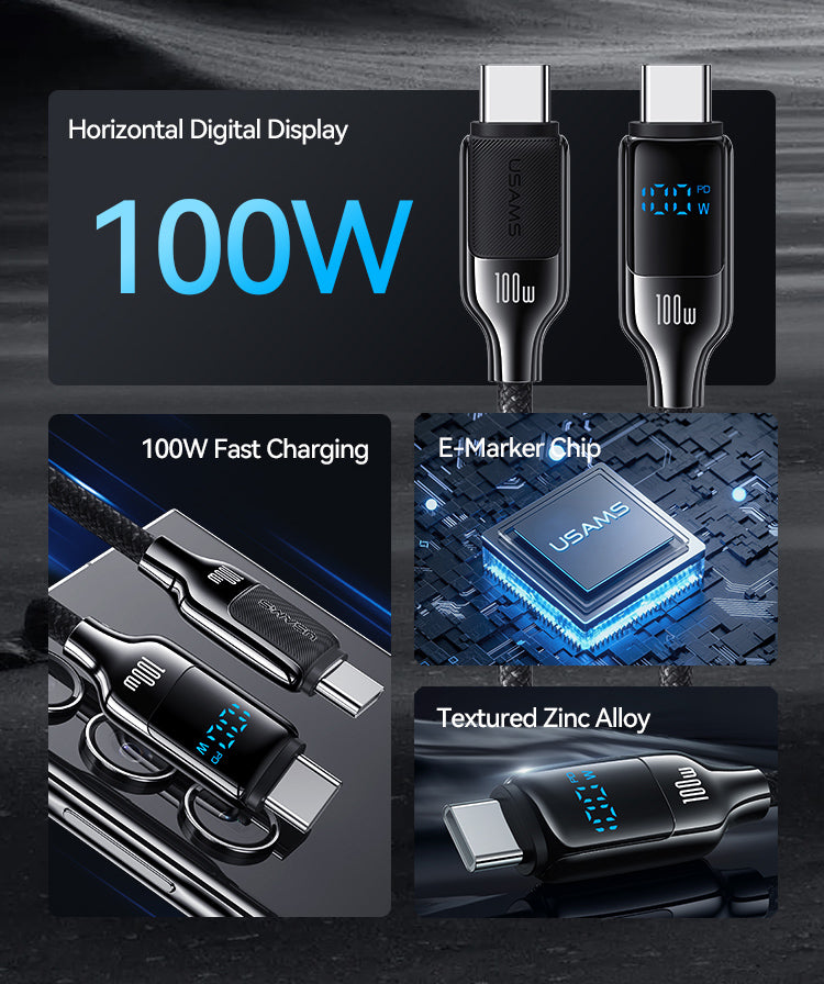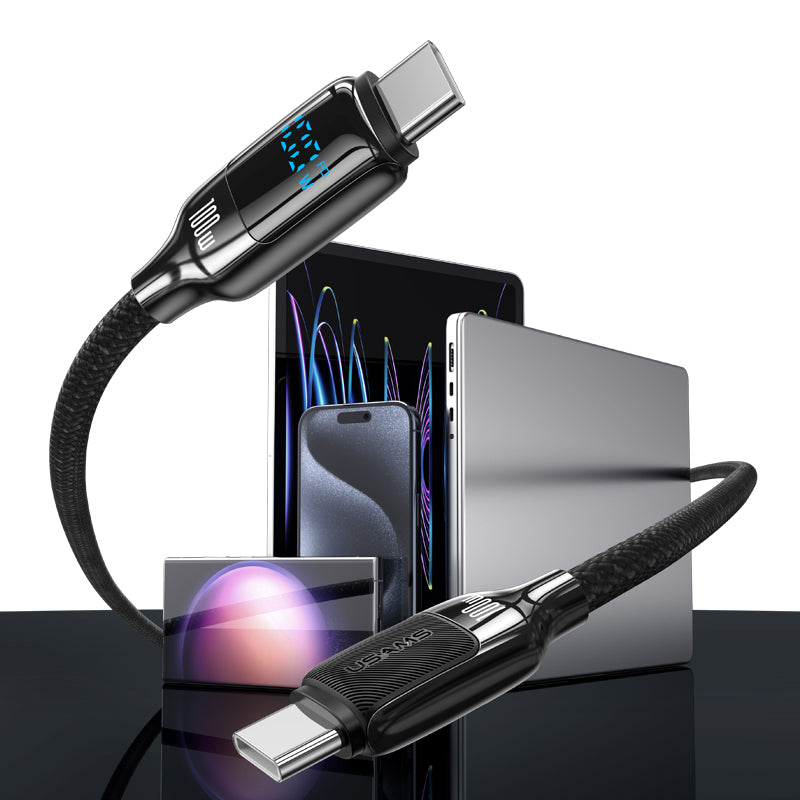 Cabo USAMS Tipo-C para Tipo-C 100W com Display LED
