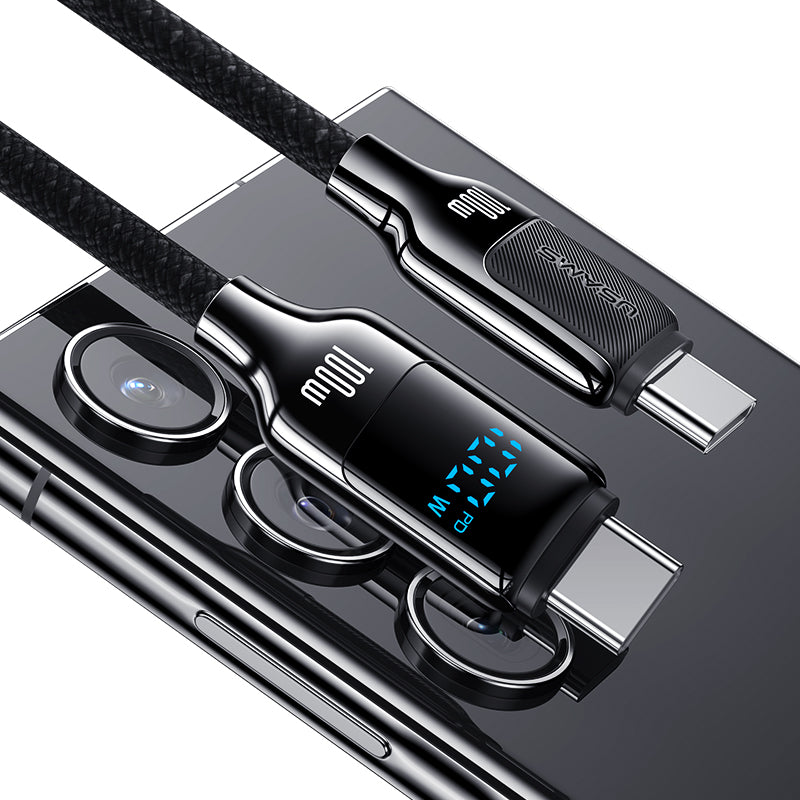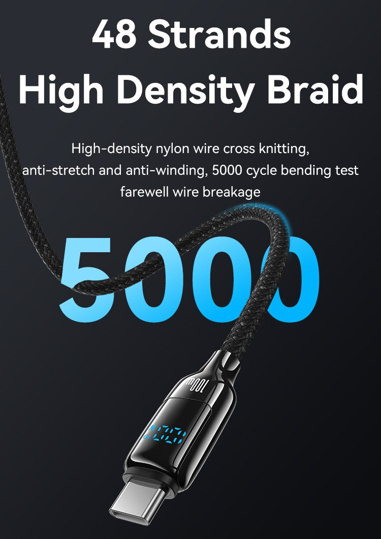O destaque deste cabo é o display digital LED, que exibe em tempo real o status de carregamento, oferecendo uma visão clara da potência fornecida. Fabricado em liga de zinco durável e material TPE, o cabo foi testado para suportar até 5.000 dobras e 10.000 conexões, garantindo uma vida útil prolongada.