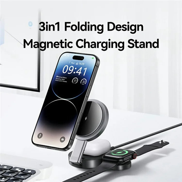 O Carregador Wireless 3 em 1 da Usams é a escolha perfeita para manteres todos os teus dispositivos carregados de forma prática e rápida.