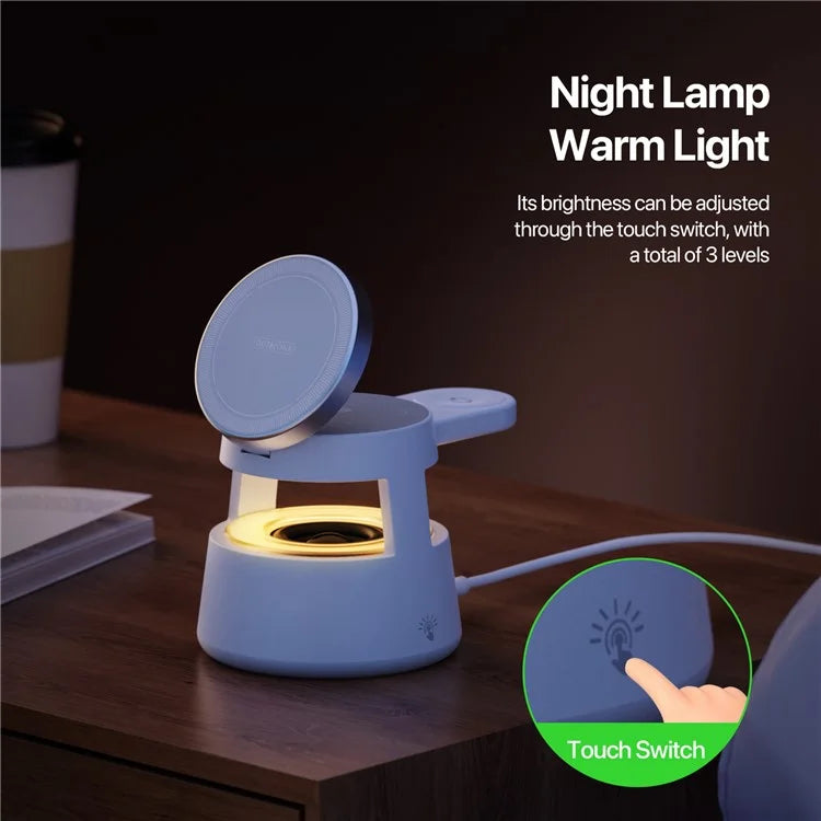 Carregador Wireless Magnético W23 5 em 1 com Coluna e Luz Noturna