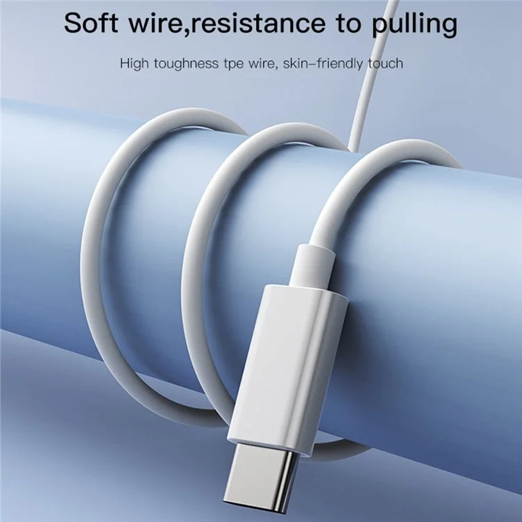 O cabo TPE resistente é à prova de dobraduras, assegurando durabilidade, e a interface Type-C torna-o compatível com todos os dispositivos de áudio com essa porta.