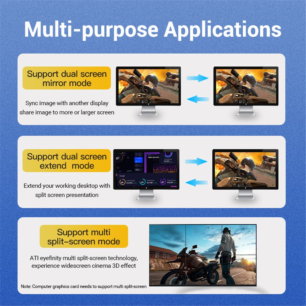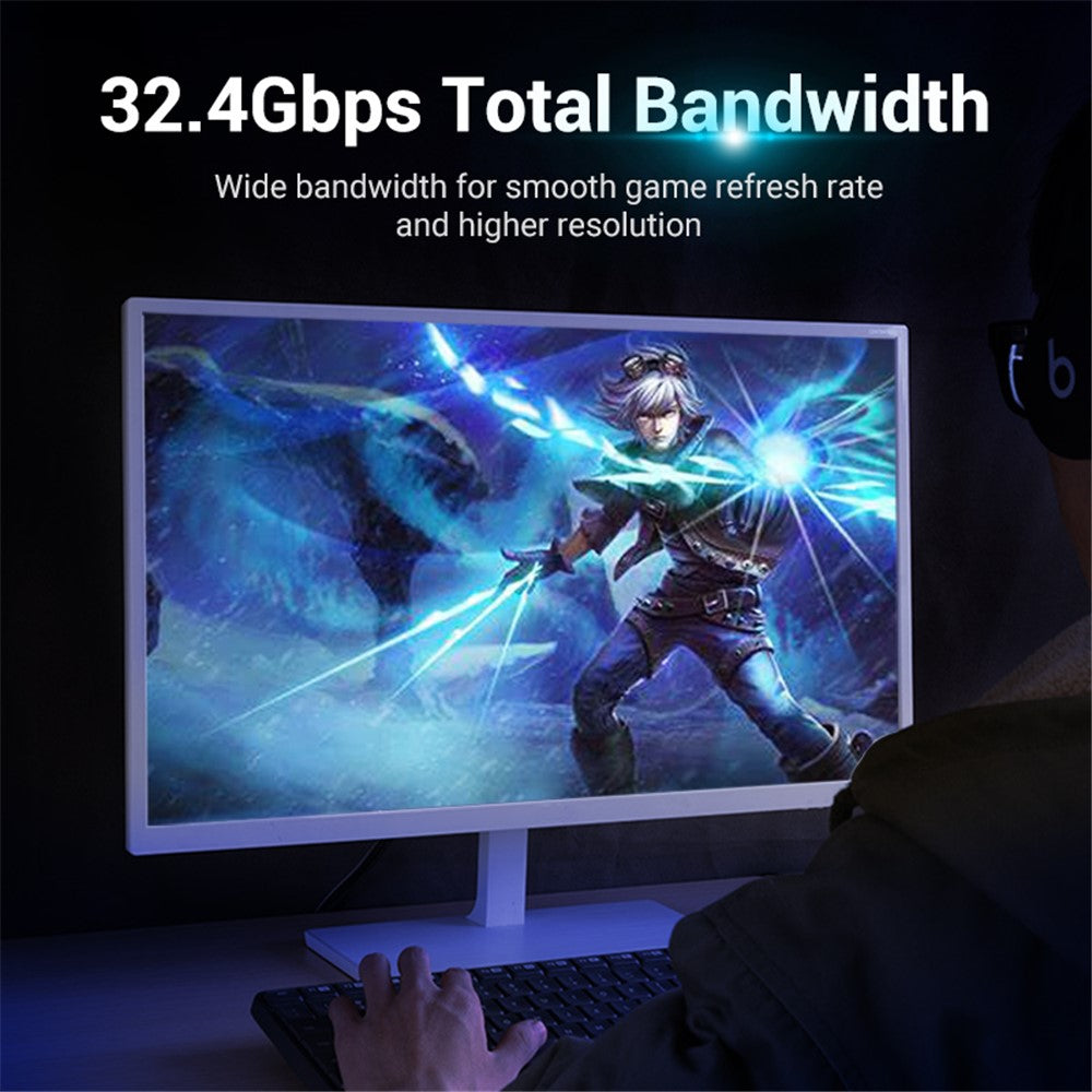 Suporta resoluções até 8K a 60Hz e 4K a 144Hz, garantindo imagem extremamente nítida, fluida e com cores vibrantes. É uma solução adequada para placas gráficas de alto desempenho, monitores profissionais e estações de trabalho.