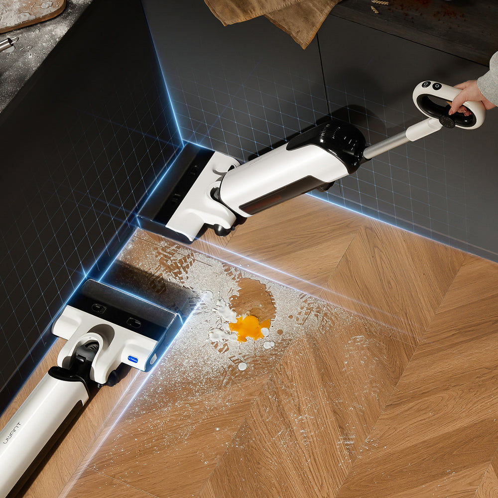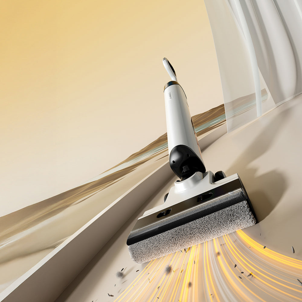 O rolo de limpeza em formato D com cobertura total foi concebido para alcançar cantos e rodapés com maior precisão. O modo de operação a 180° facilita a limpeza por baixo de móveis e zonas de difícil acesso, garantindo uma cobertura mais eficaz da superfície.