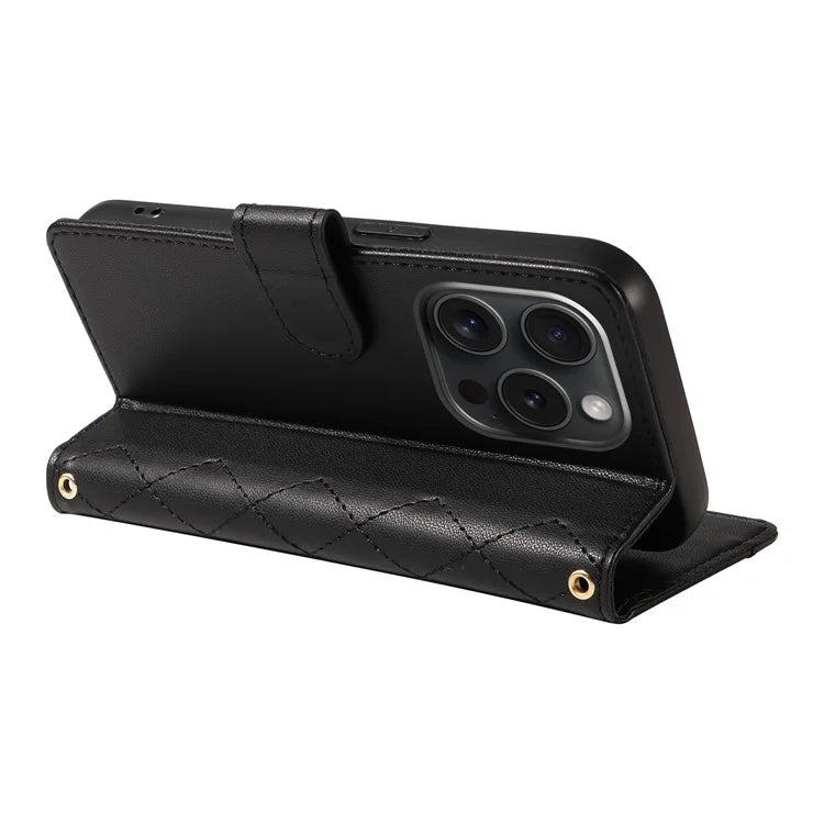 O design com padrão de costura em losangos acrescenta um charme especial, enquanto os três slots para cartões e um bolso para dinheiro permitem que leves o essencial contigo.
