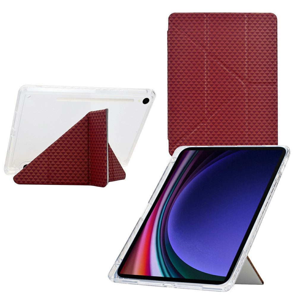 A Capa Y-Fold oferece proteção completa e estilo moderno para o seu Samsung Galaxy Tab S10 FE, Tab S9 FE ou Tab S9. Fabricada em pele sintética com parte traseira em acrílico transparente, combina durabilidade com um design elegante em padrão pirâmide.