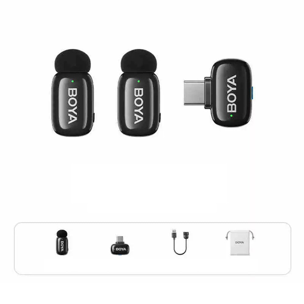 microfone sem fios boya mini-05 com recetor usb-c e 2 transmissores