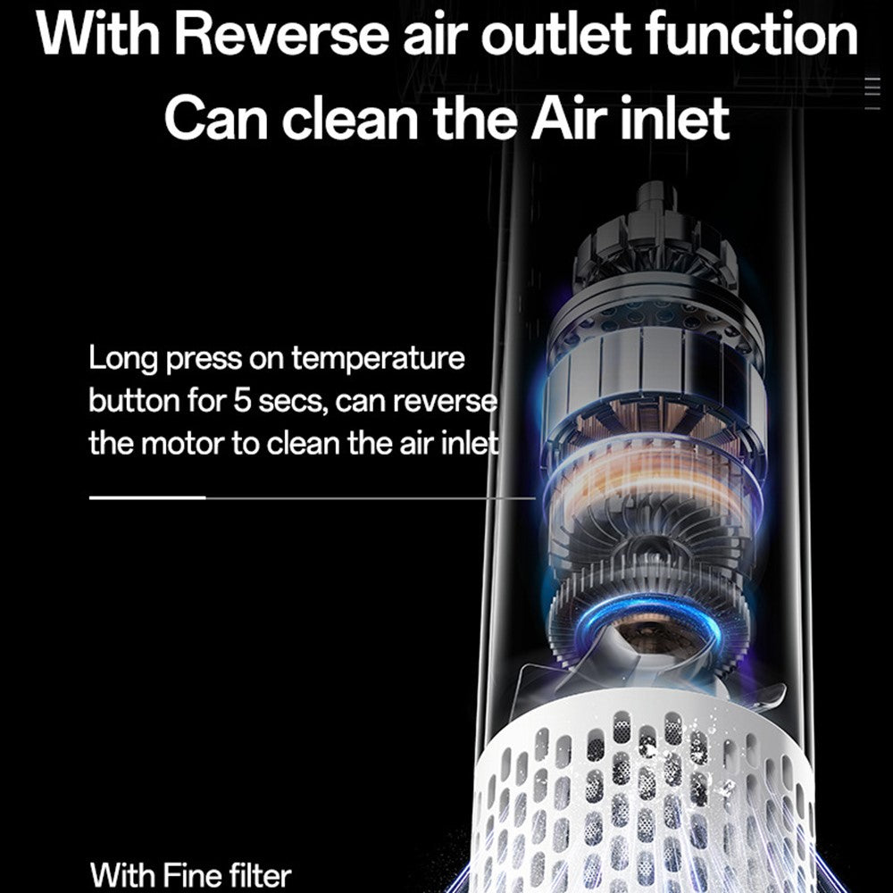 Dispõe de quatro modos de funcionamento adaptáveis a diferentes tipos de cabelo: Secagem Rápida, Ciclo Frio-Quente, Proteção Térmica e Secagem Suave. Inclui ainda função de autolimpeza, ativada ao pressionar o botão de temperatura durante 5 segundos, garantindo melhor higiene e desempenho prolongado.