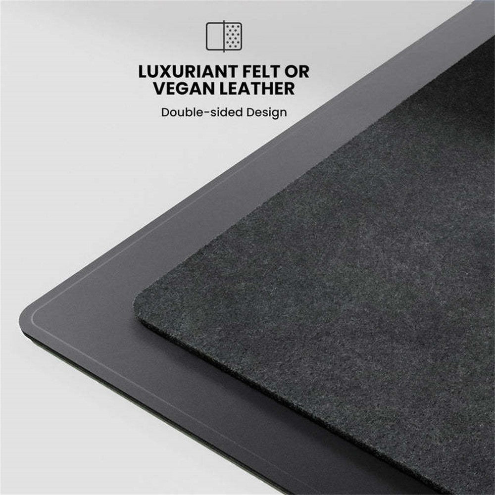 Fabricado em pele PU e feltro, oferece superfície confortável, impermeável e resistente a manchas, protegendo contra derramamentos acidentais. O bolso oculto integrado permite guardar documentos ou pequenos acessórios, mantendo a secretária organizada.
